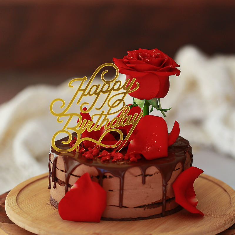 Celebrate special moments with our gold medal-winning chocolate cake, beautifully decorated with super grade red roses and freeze-dried raspberries. This romantic birthday cake features: